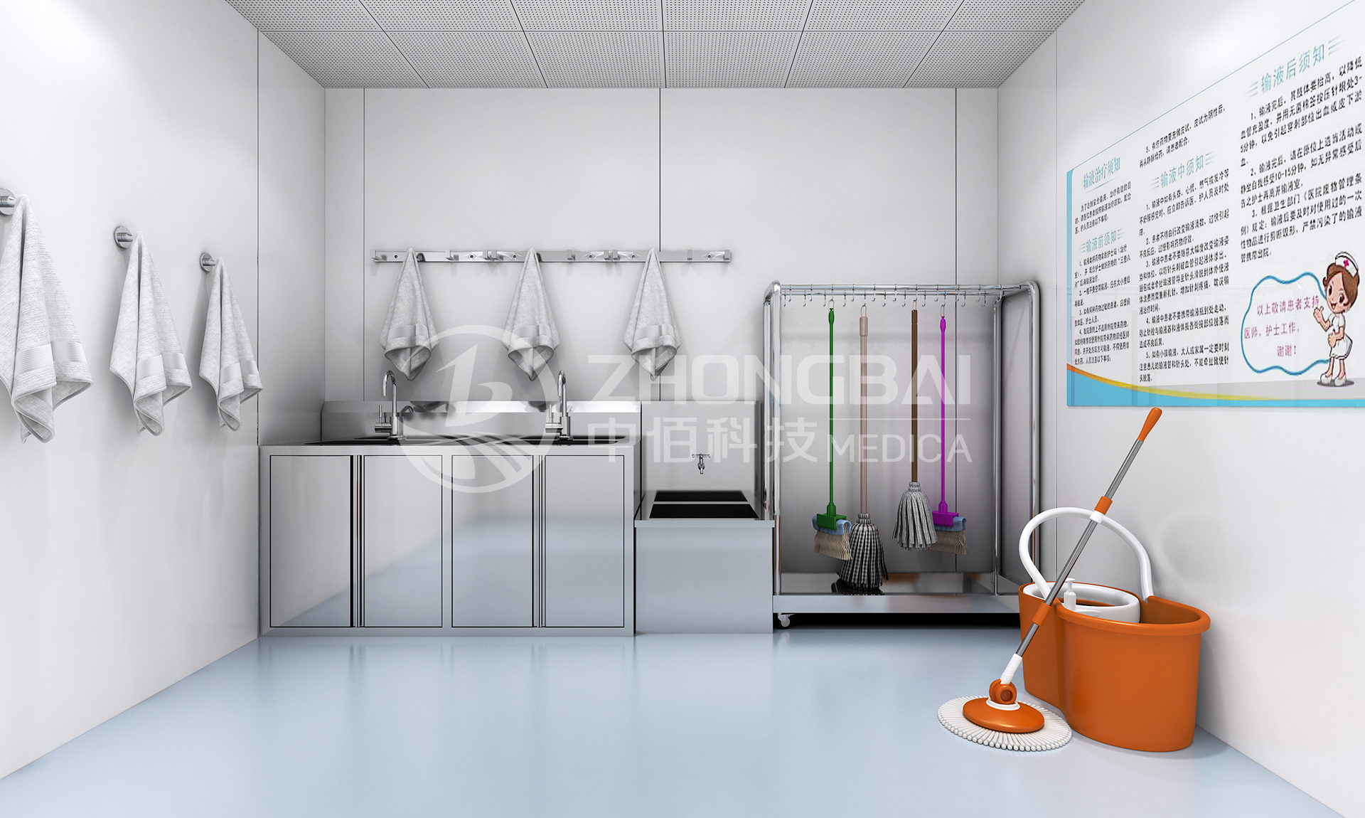 處置室一般在治療室近處,主要為醫(yī)護(hù)人員實(shí)施皮膚準(zhǔn)備及清潔灌腸等操作,臨時(shí)存放治療產(chǎn)生的醫(yī)療廢物及需要浸泡消費(fèi)的醫(yī)療物品的專用工作室。